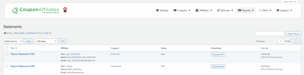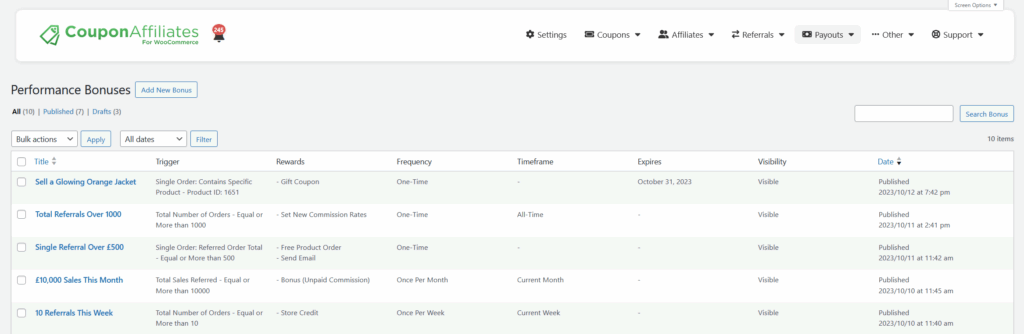 You can now filter your Partner-Coupons on the admin page, making it easier to manage and review your active affiliate coupons.