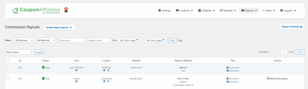 You can now filter Provisionsauszahlungen on the admin page based on a variety of criteria, helping you track and manage payouts more effectively.