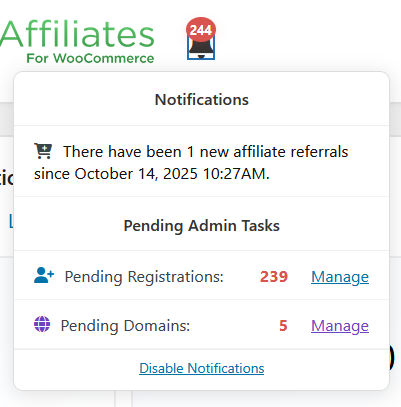Instantly see new referrals, pending affiliate registrations, payout requests, and other important updates.