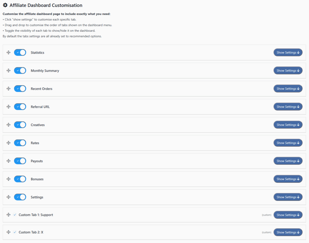 You can now re-order the tabs on the affiliate dashboard and affiliate portal using drag and drop!